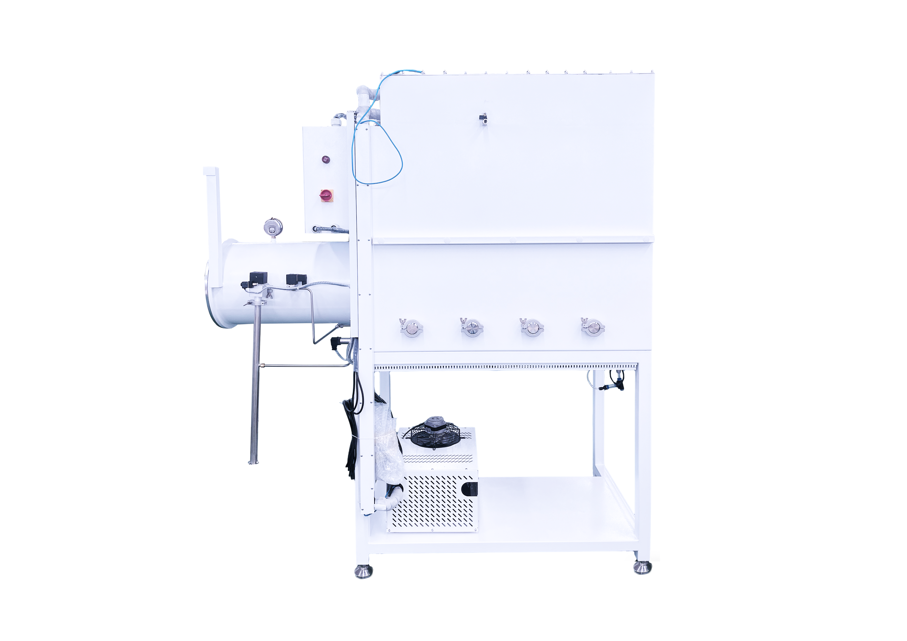 | 大过渡舱 | 材料 | 圆柱形(304不锈钢),与手套箱连接,位于箱体右侧,采用轴锁式大过渡舱门,易于操作 |