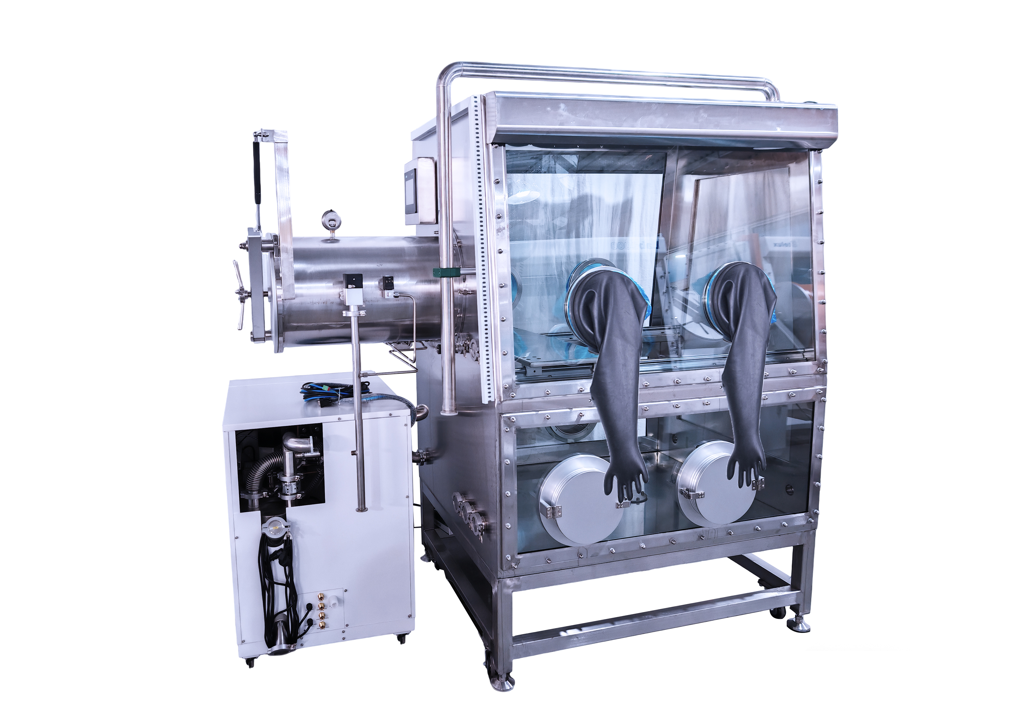 | 大过渡舱 | 材料 | 圆柱形(304不锈钢),与手套箱连接,采用轴锁式大过渡舱门,易于操作 |