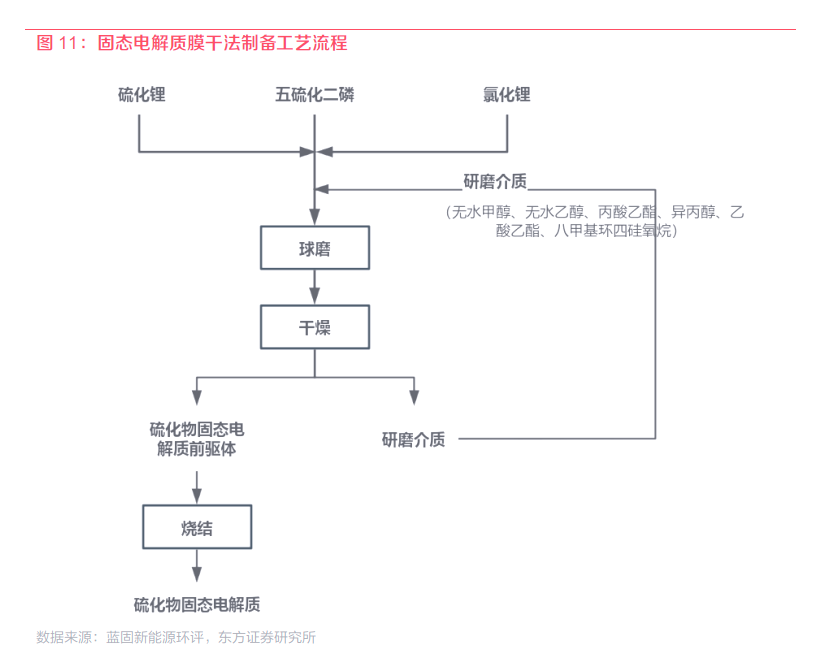 球磨阶段:将硫化锂、五硫化二磷、氯化锂等原料按照特定比例混合,加入球磨介质后,通过球磨机进行机械研磨,从而获得均匀的浆料。