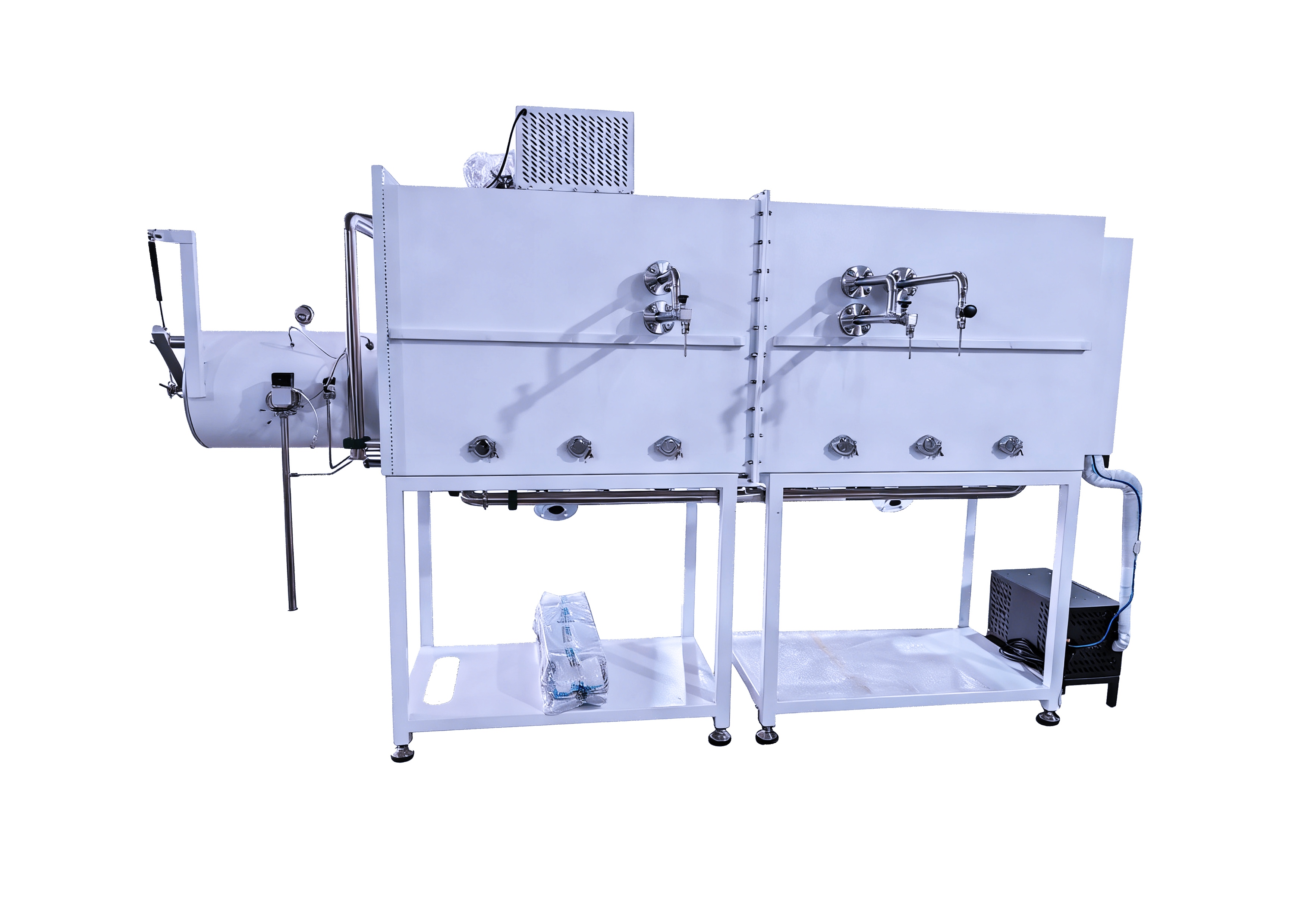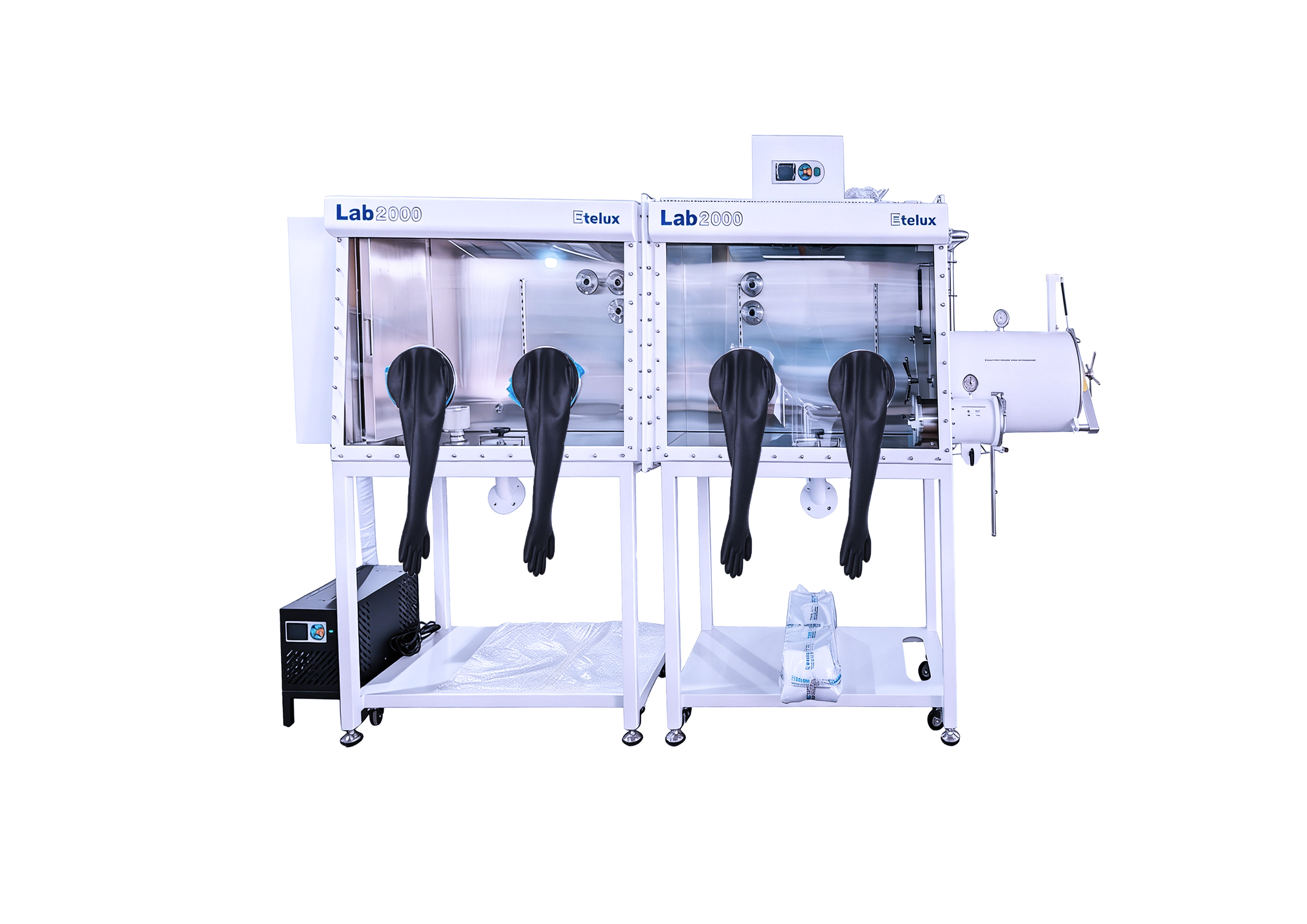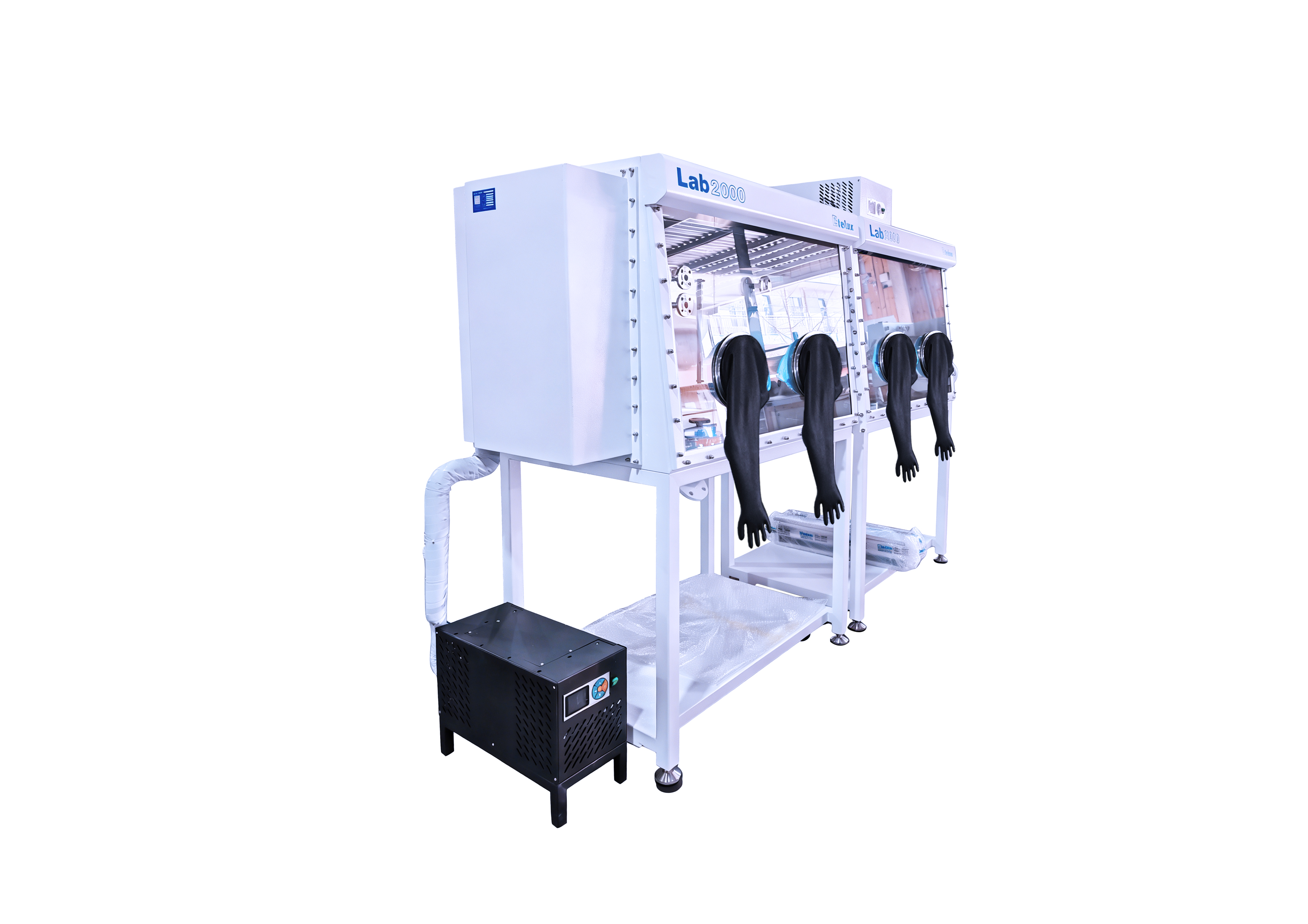 集成工业空调内嵌冰箱双舱双工位手套箱系统