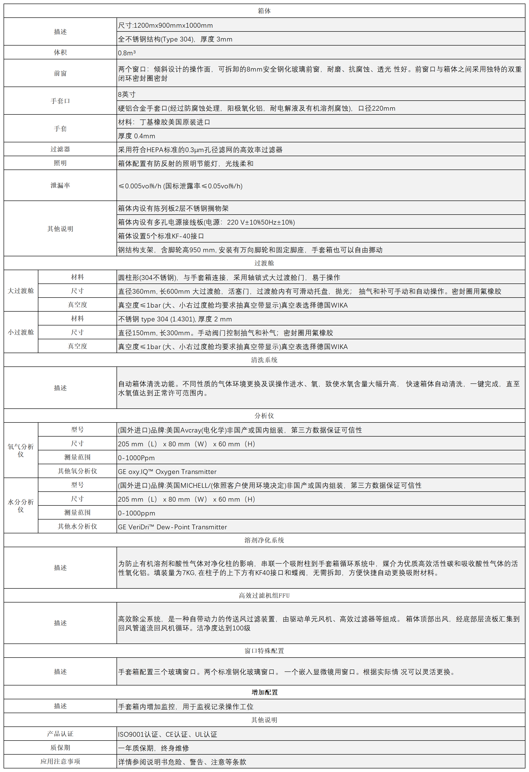 带百级净化系统分体式标准手套箱