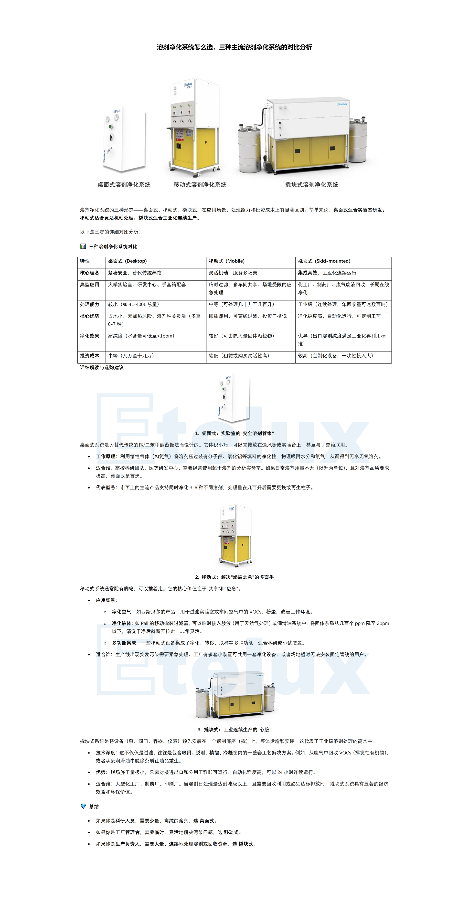 溶剂净化系统怎么选,三种主流溶剂净化系统的对比分析