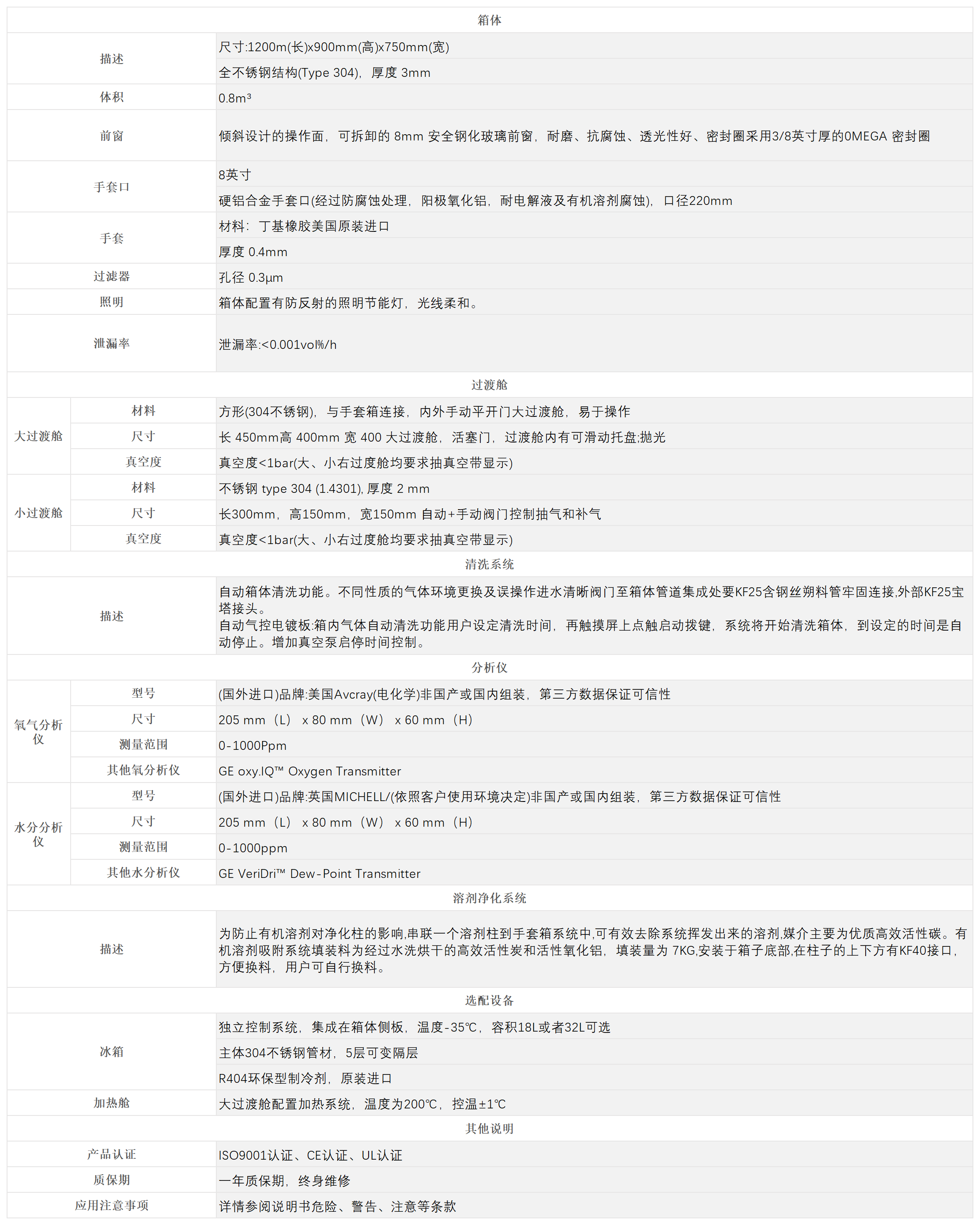 大小方仓单工位一体式手套箱